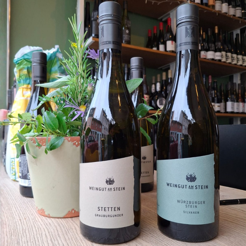 Verkoste drei charakterstarke Weine vom renommierten Weingut am Stein sowie zwei ausgewählte Spezialitäten von Wohlsein Weine und entdecke dabei die Vielfalt fränkischer Weinkultur.